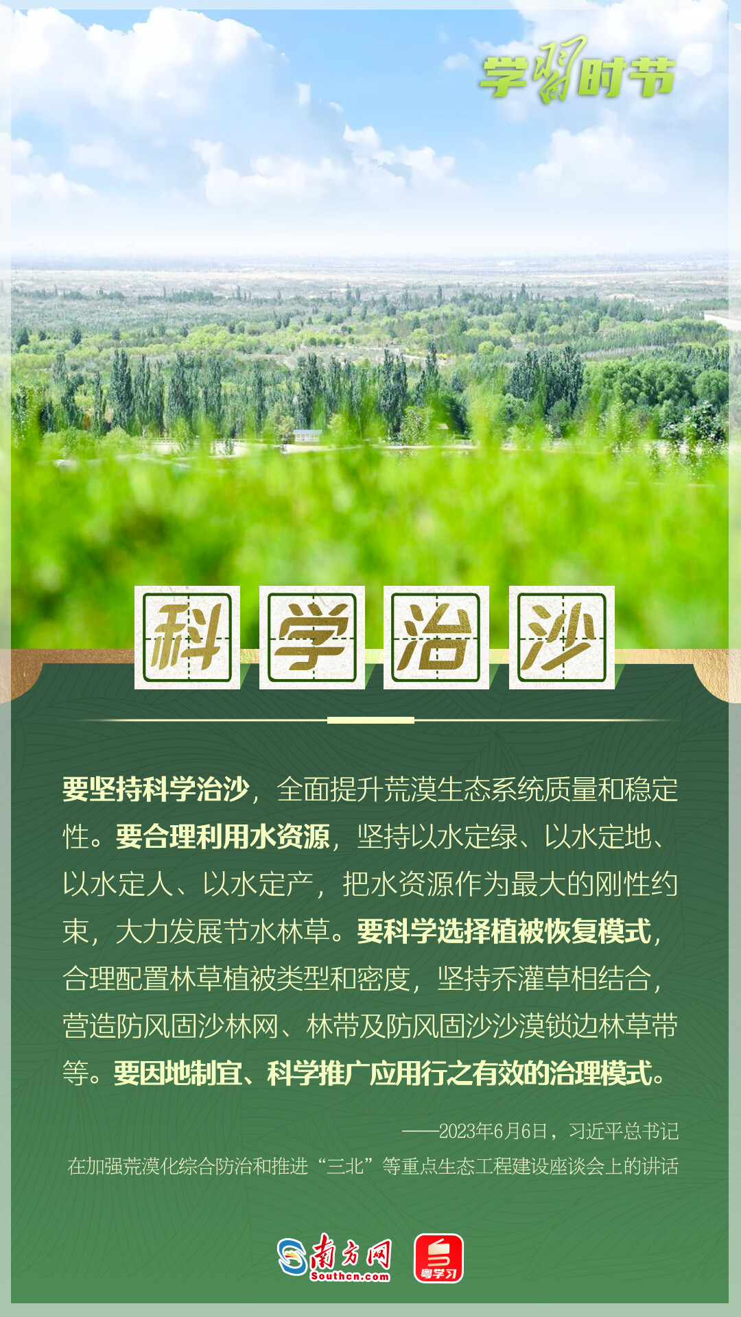 习近平总书记高度重视荒漠化防治工作,深入多地调研,多次作出重要指示。在习近平生态文明思想指引下,中国防治荒漠化成效显著。让我们一起从总书记的重要论述里学习领悟,坚定走好荒漠化防治之路。