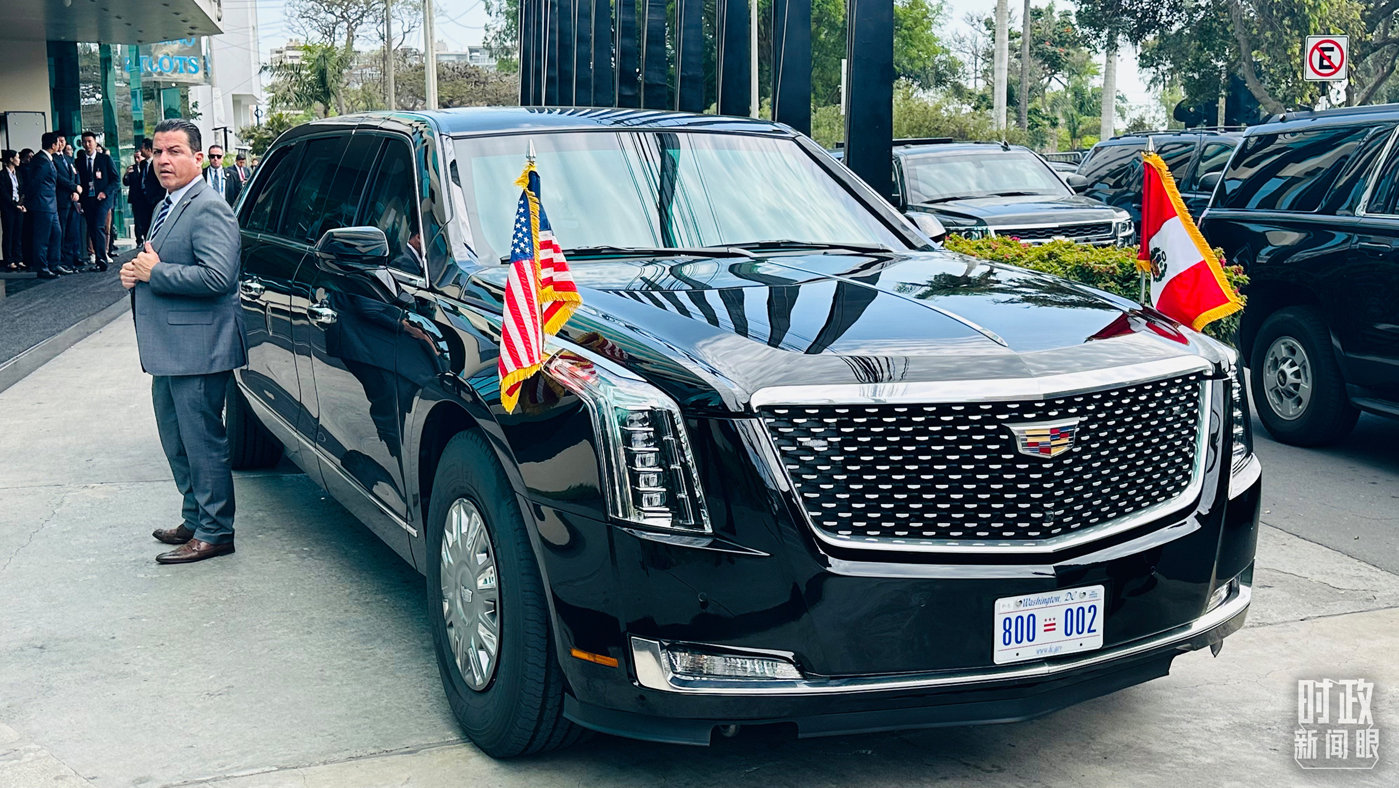 △美国总统拜登乘车抵达中美元首会晤现场。(总台央视记者范一鸣拍摄)