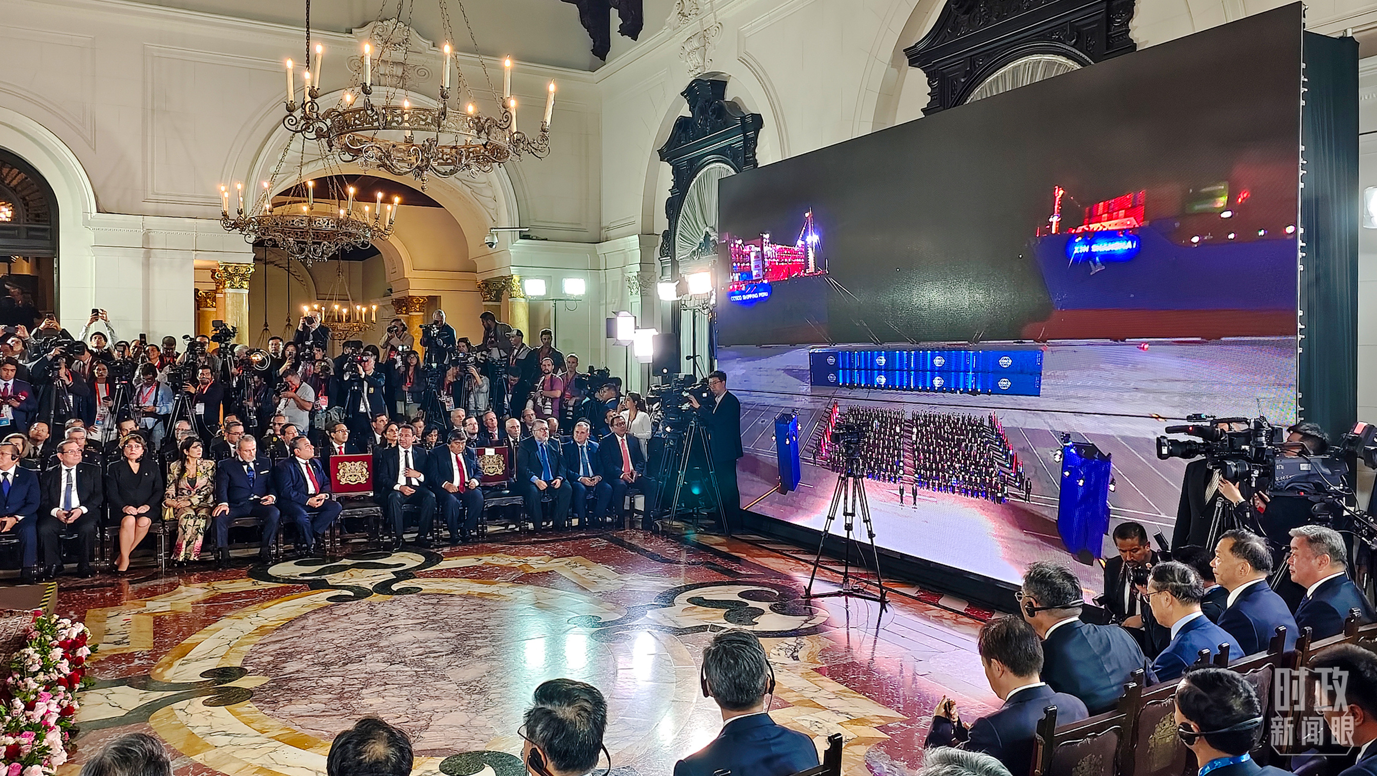 一场仪式,指的是秘鲁钱凯港开港仪式。钱凯港是中秘共建“一带一路”重要项目,也是南美首个智慧港口和绿色港口。此访期间,两国元首以视频方式共同出席开港仪式,下达“开港”指令。随着钱凯港的开港,中秘间单程海运时间将缩短至23天。这个新港口也见证着一条新时代亚拉陆海新通道的诞生。