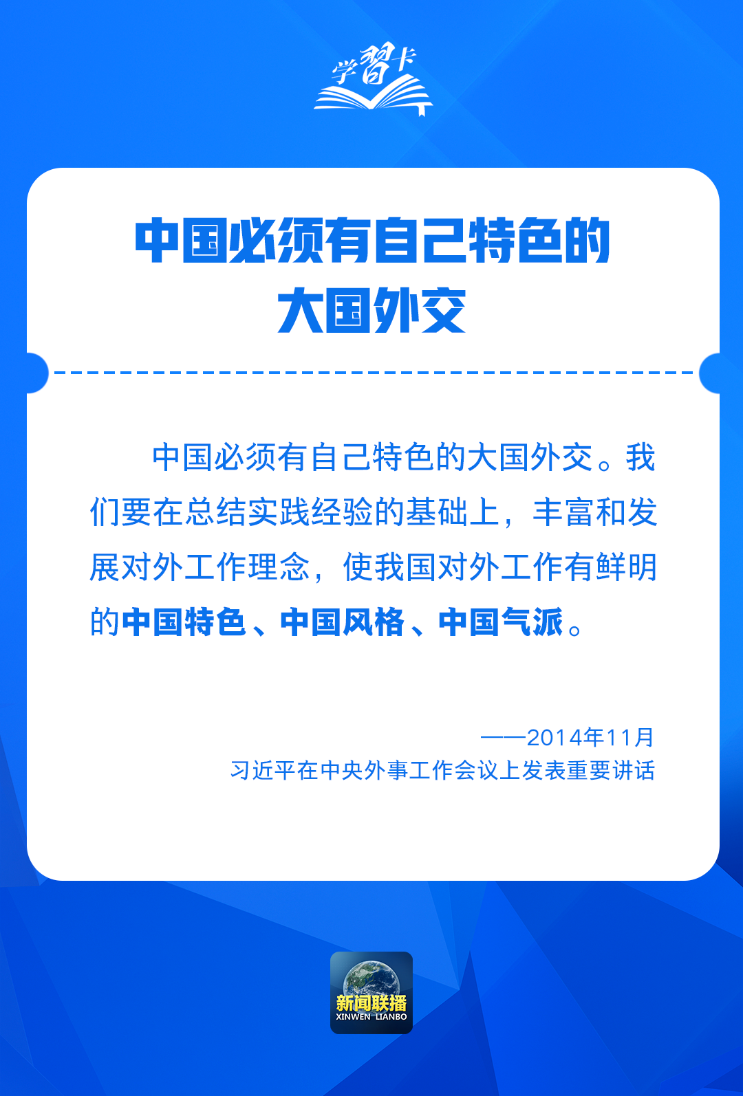 2014年11月28日至29日,中央外事工作会议召开,习近平总书记高瞻远瞩指出,中国必须有自己特色的大国外交,标注了中国外交的崭新坐标。