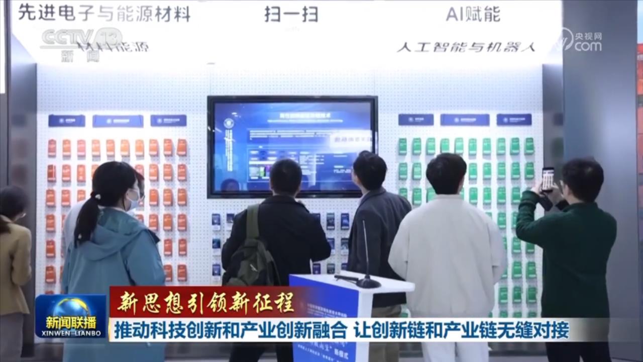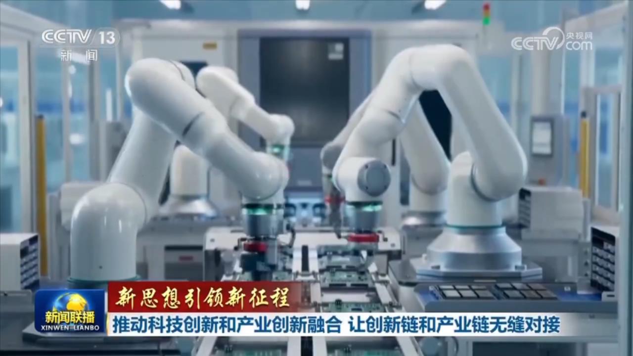 央视网消息(新闻联播):习近平总书记指出,抓科技创新和产业创新融合,要搭建平台、健全体制机制,强化企业创新主体地位,让创新链和产业链无缝对接。眼下,各地正加快打通“双链”间的藩篱和堵点,实现“1+1>2”的效果,不断形成新质生产力,为中国高质量发展注入澎湃动能。