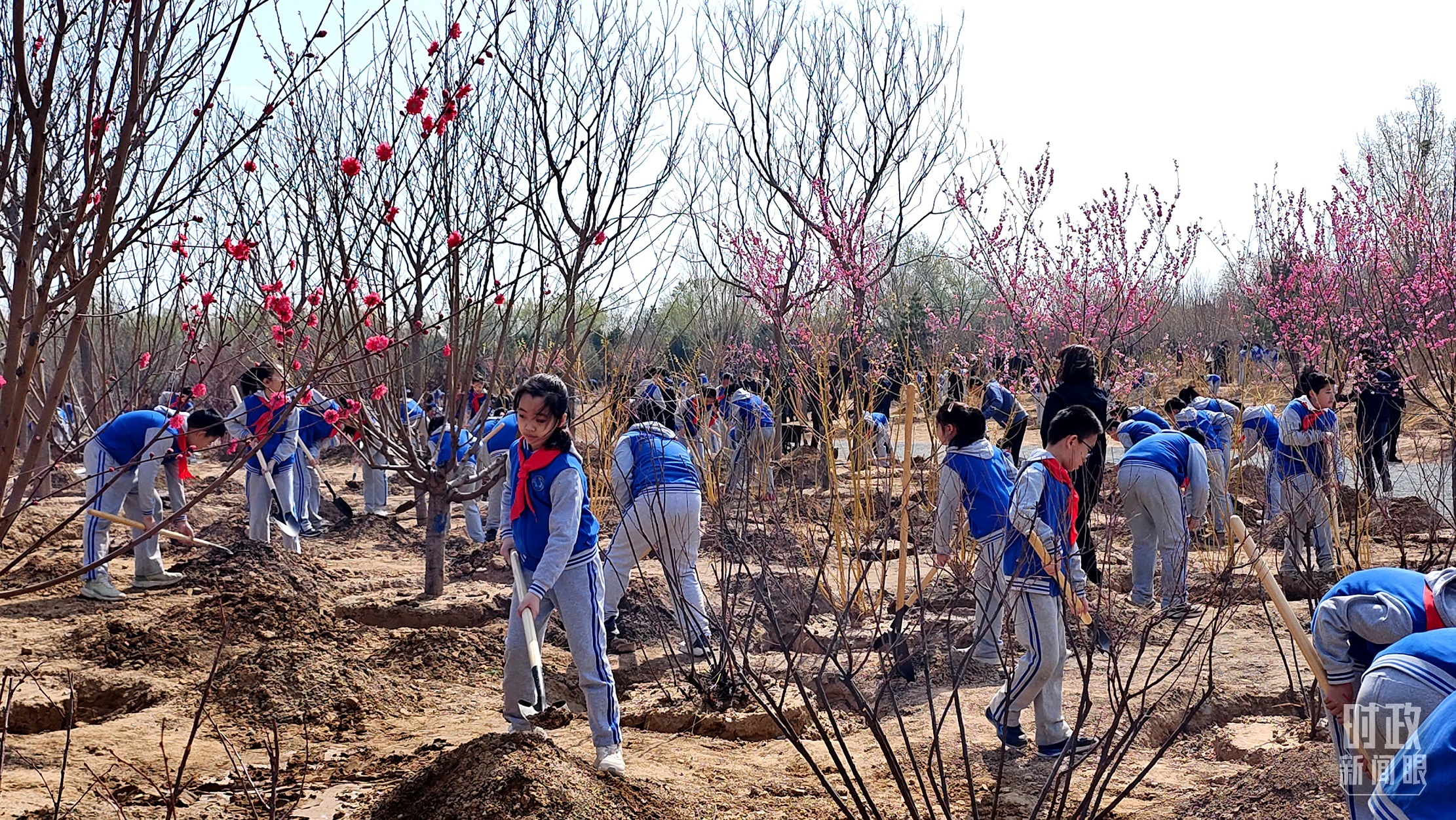 △少先队员拿起铁锹参加义务植树。(总台央视记者范凯拍摄)