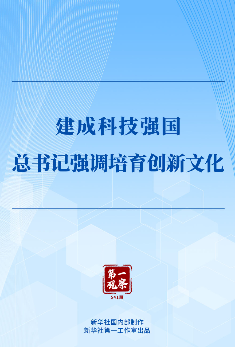 许多影响创新发展的力量,来自于深层次的文化和观念。建设科技强国不仅是技术层面的追赶超越,更是文明文化的发展革新。今时今日之中国,创新文化如同“超级黏合剂”,把制度优势、人才储备、市场需求汇聚成科技自立自强的澎湃动能。