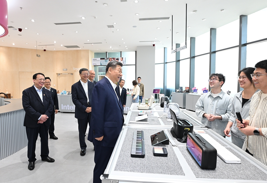△2025年4月29日,习近平总书记来到上海徐汇区“模速空间”大模型创新生态社区人工智能产品体验店考察。