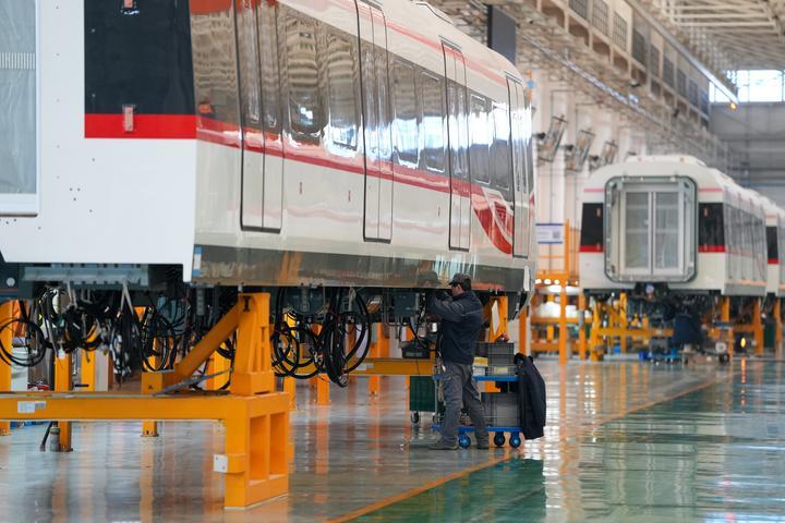 2025年2月14日,工作人员在京投装备河北京车智能制造基地总组装车间内工作。京投装备河北京车智能制造基地位于河北省保定市,是贯彻京津冀协同发展战略的重要项目。“北京研发+河北制造” 的模式,既发挥了北京的创新优势,又拉动了河北当地的就业和经济,对培育首都轨道交通及其关键零部件等上下游产业、提升河北高端装备制造水平发挥了推动作用。