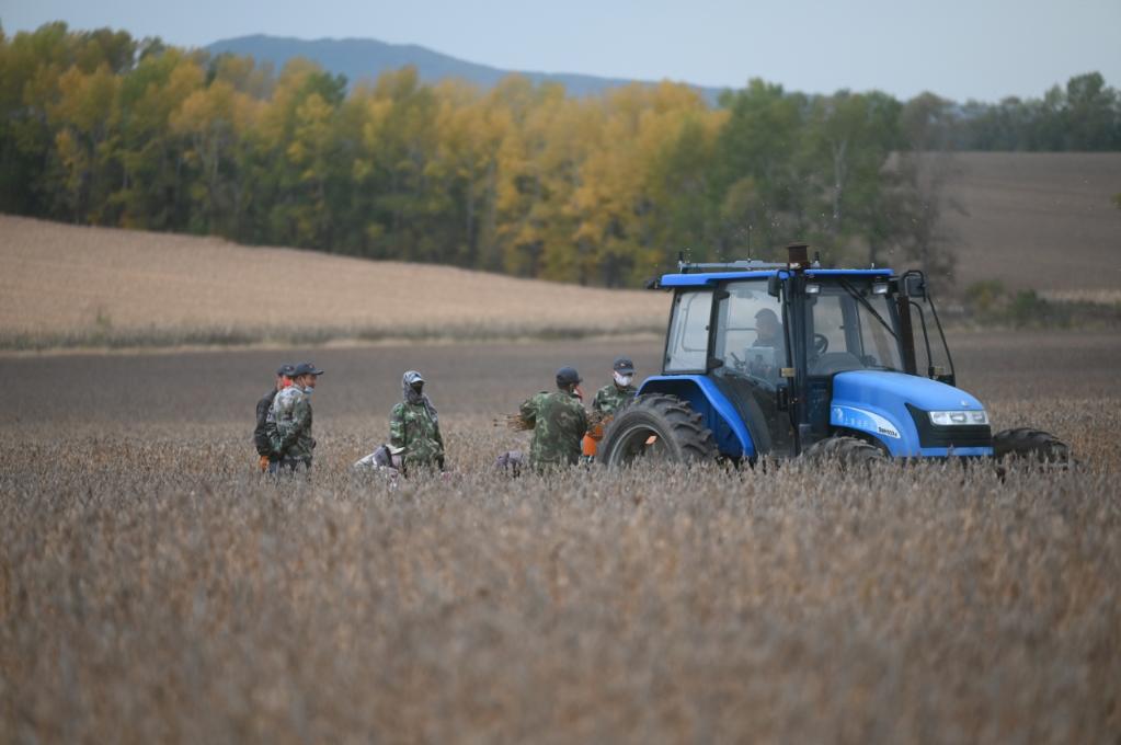 “好豆子!金豆子!”秋收时节,黑龙江北大荒集团引龙河农场有限公司第七管理区的黑土地上,一群人欢呼着。