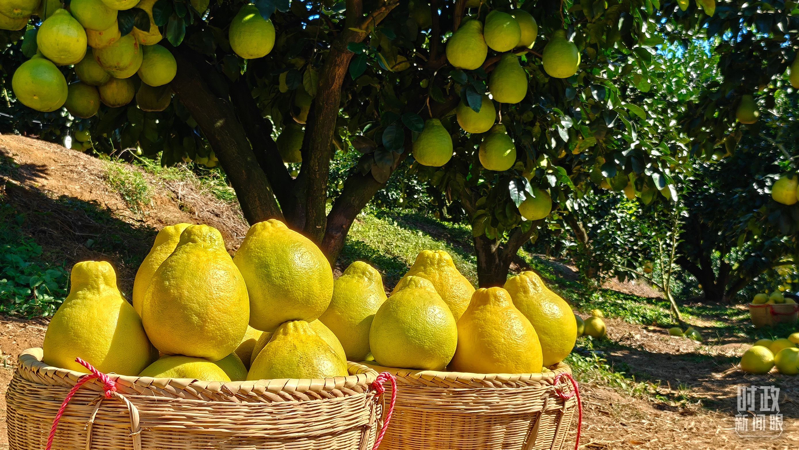 △南福金柚种植基地,柚林迎来丰收。(总台记者吴媚苗、总台央视记者鄂介甫拍摄)