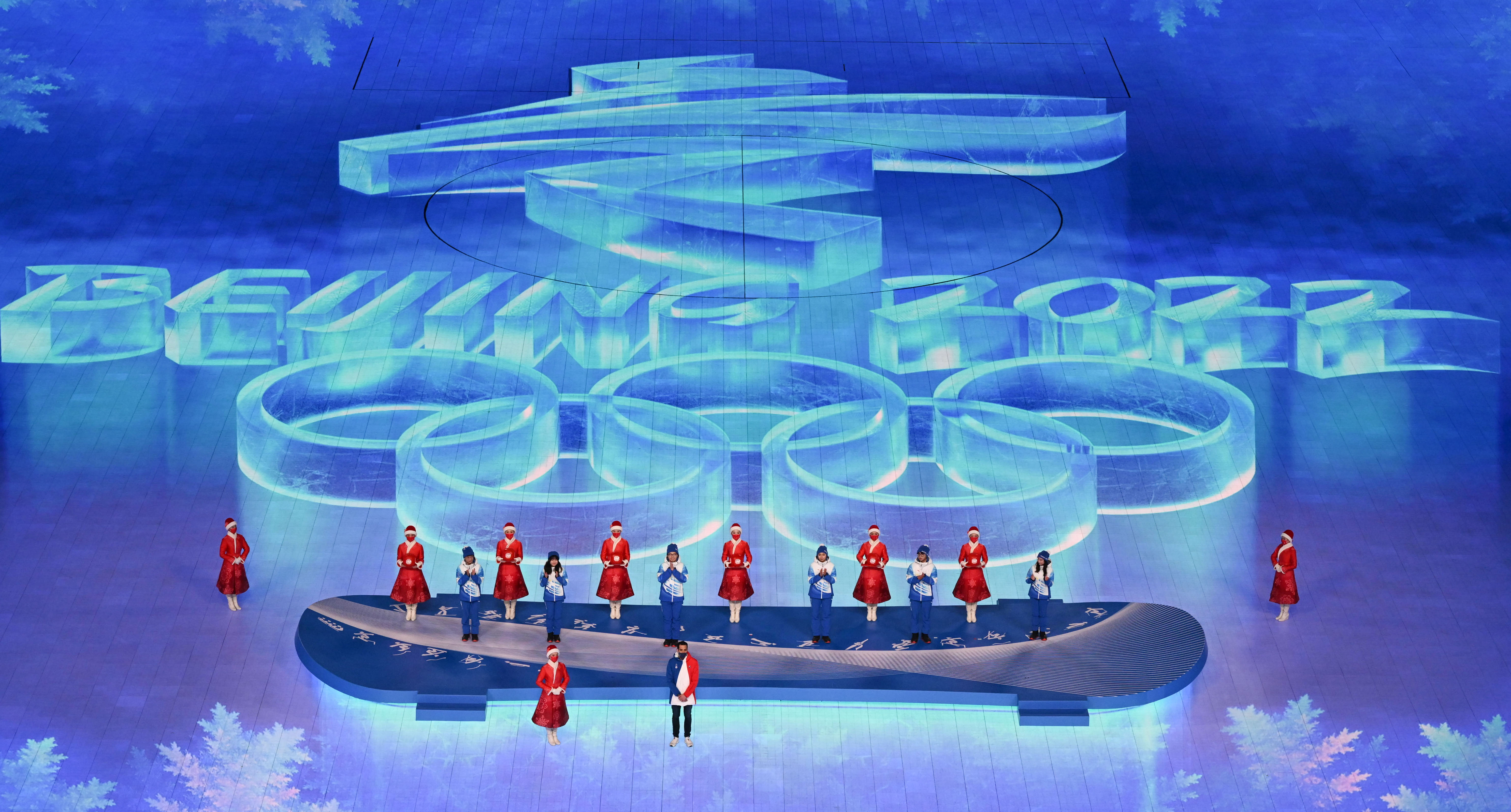 2022年2月20日晚,北京第二十四届冬季奥林匹克运动会闭幕式在国家体育场举行。这是向志愿者致谢环节。新华社记者 李贺 摄