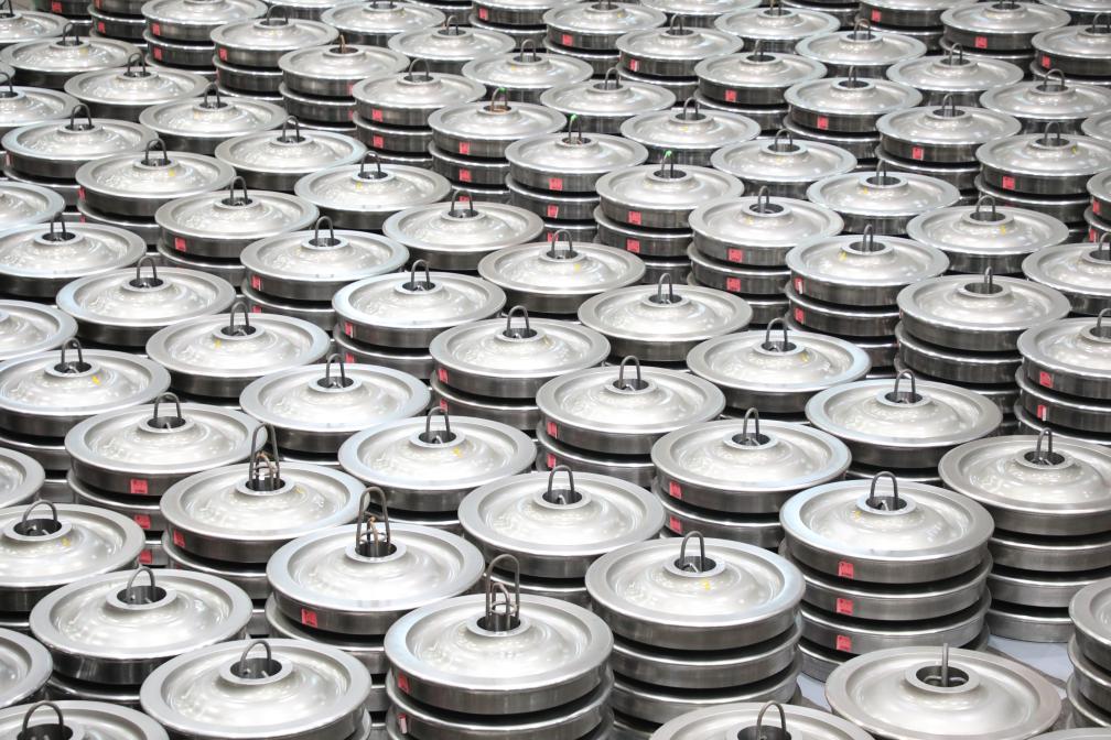 图为太原重工轨道交通设备有限公司车轮厂二线的车轮产品。(受访者供图)