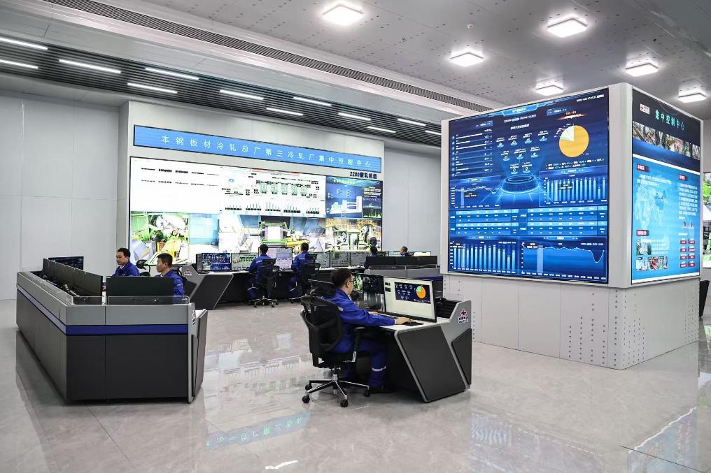 工作人员在鞍钢集团所属的本钢板材冷轧总厂第三冷轧厂集控中心监控设备运行情况。新华社记者 潘昱龙 摄