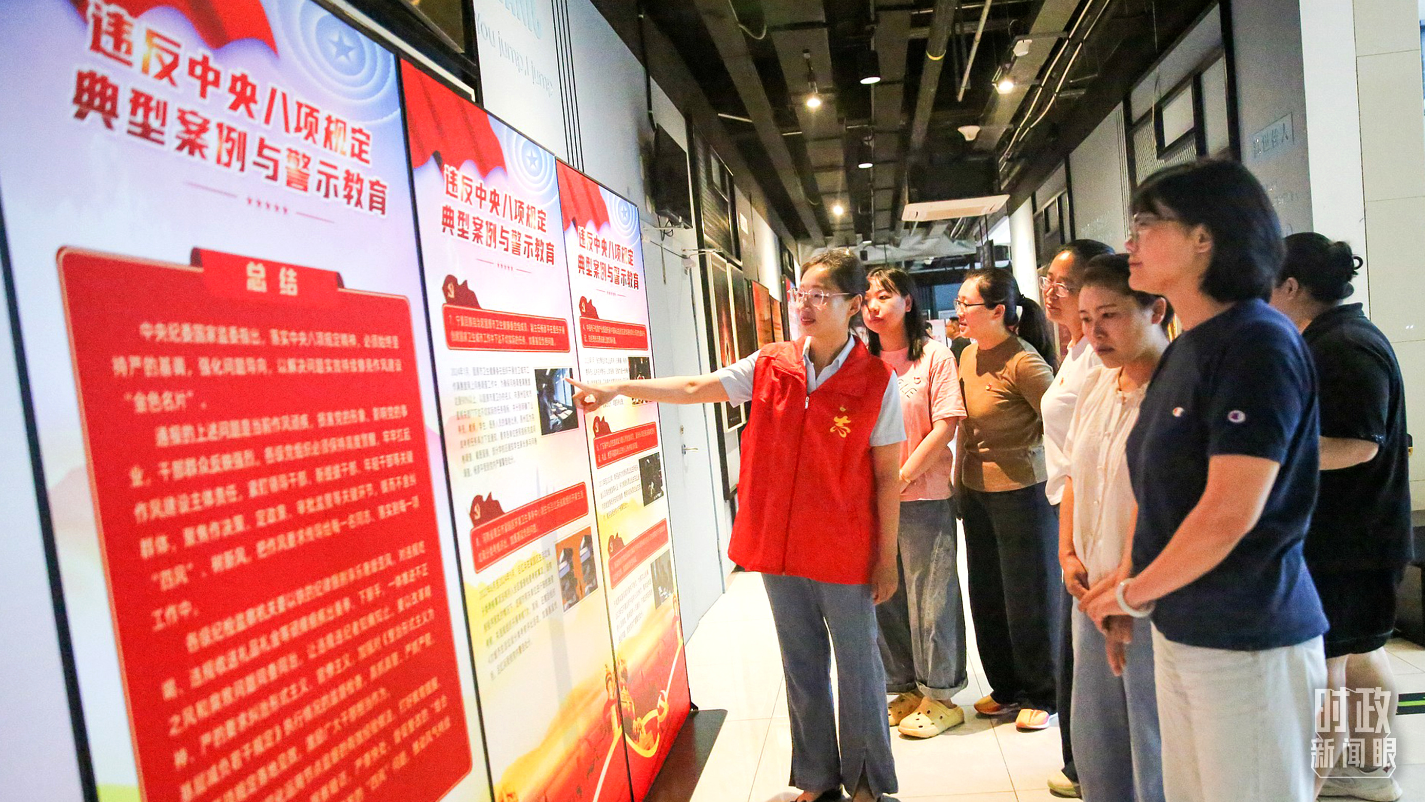 △2025年8月5日,江苏南通,当地青年党员参观深入贯彻中央八项规定精神学习教育专题展。(图/视觉中国)