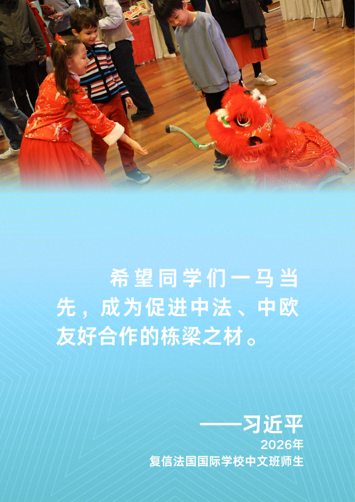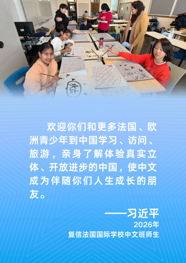 在给习近平主席的信中,中文班师生代表分享学习中文的体会和对中国文化的喜爱,表达增进中法青少年交流、深化中法传统友谊的积极意愿。
