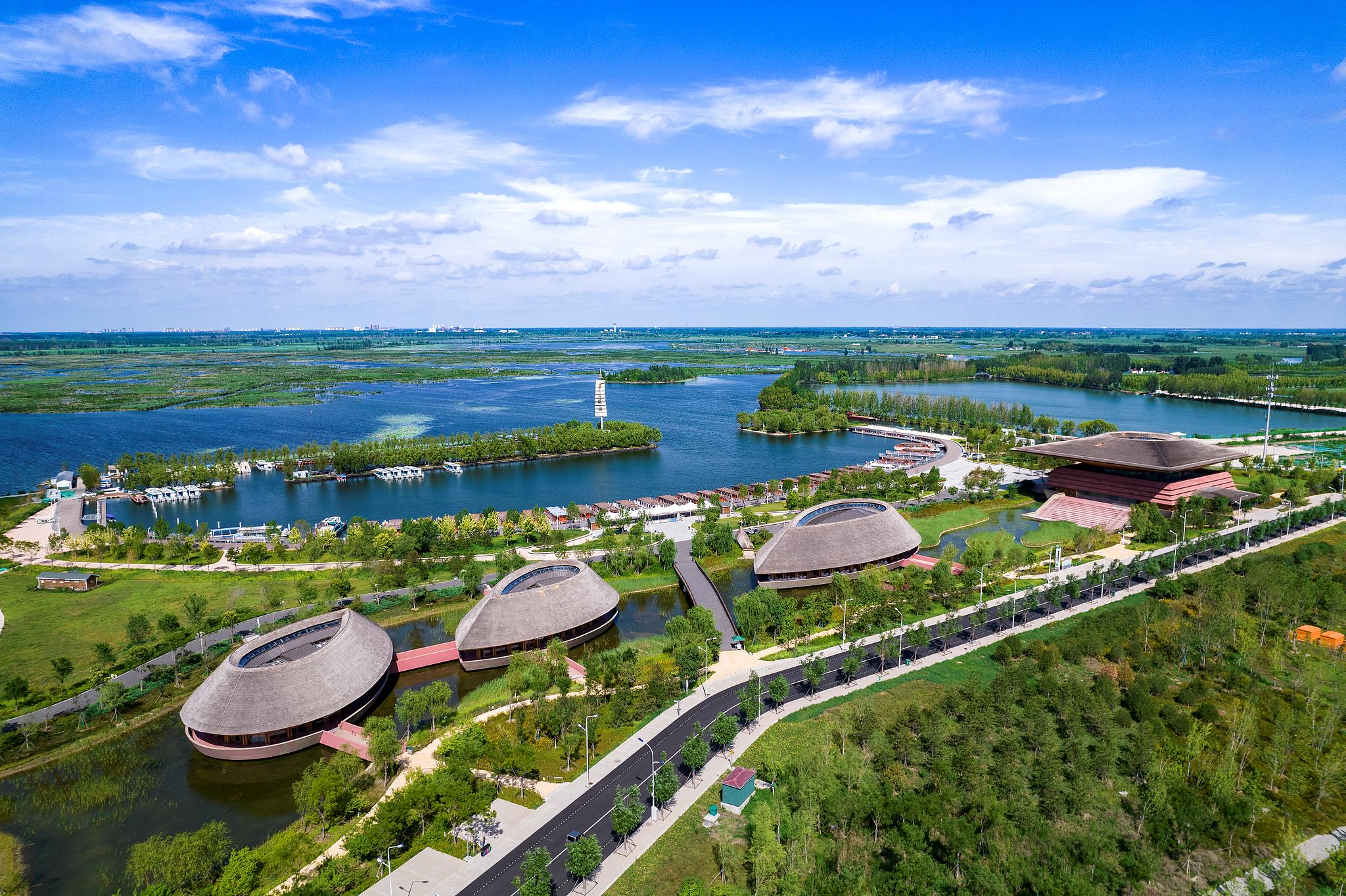 如今,雄安新区森林覆盖率提升到35.1%,白洋淀碧波荡漾。