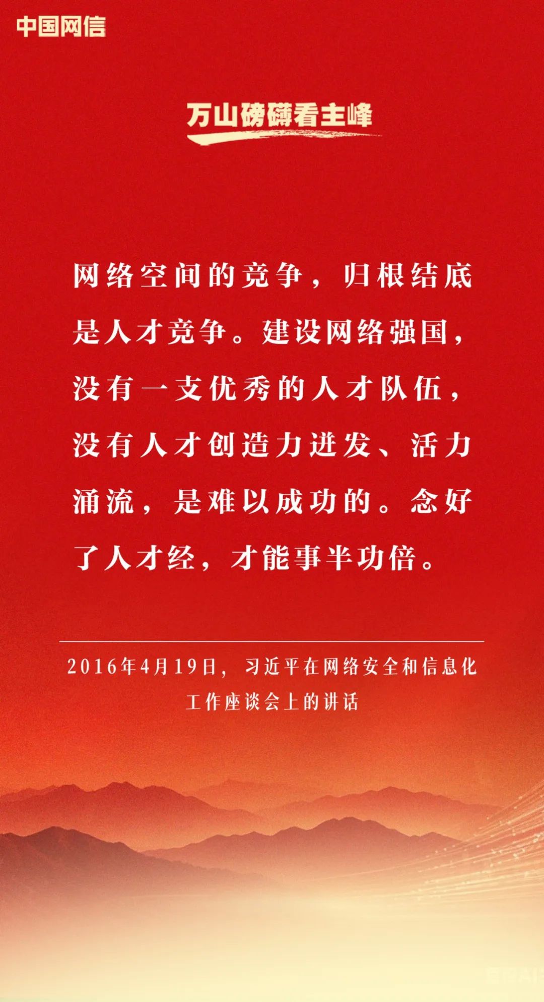 2016年4月19日,习近平总书记主持召开网络安全和信息化工作座谈会并发表重要讲话,为做好网络安全和信息化工作指明了前进方向、提供了重要遵循。历经多年发展,网信事业取得历史性成就,网络强国建设迈出坚实步伐。《中国网信》杂志梳理习近平总书记相关重要论述,与你一起回顾学习。