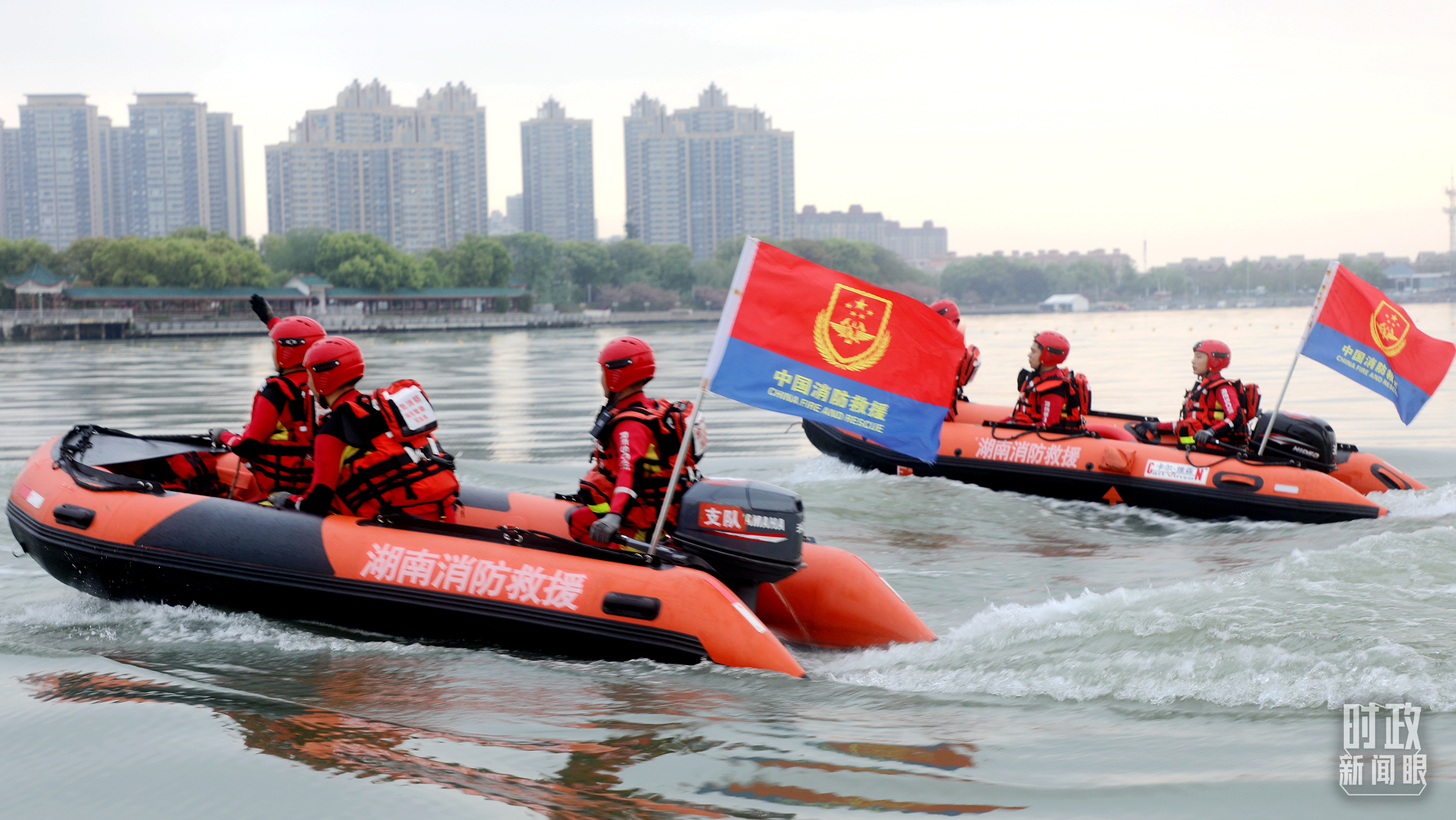 △2026年4月,湖南常德消防救援支队水域救援专业队在柳叶湖开展舟艇集结训练。(图/视觉中国)