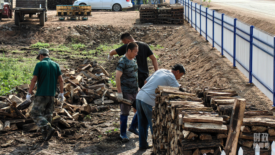 △2023年9月,黑龙江龙王庙村村民正在整理家中被洪水冲垮的柴火垛。(总台央广记者潘毅拍摄)