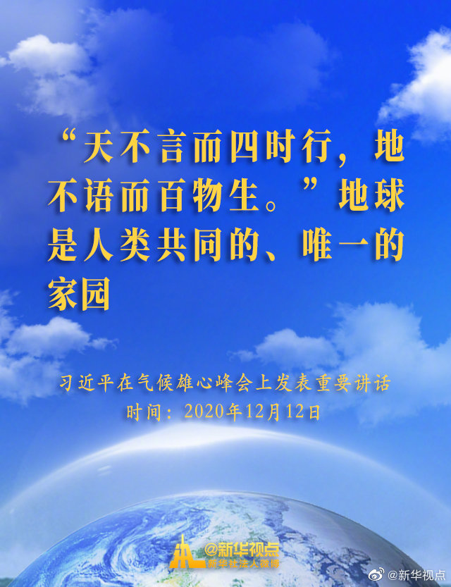 12月12日,国家主席习近平在气候雄心峰会上发表题为《继往开来,开启全球应对气候变化新征程》的重要讲话。一起来看讲话金句↓