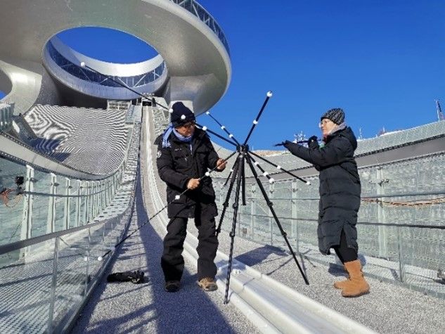 1月4日团队初到国家跳台滑雪中心,寒潮就给了来自南方的科研人员们一个“下马威”。刘宇保存的一张手机截图记录了1月6日当地实时气温:下午4点,气温零下30摄氏度,体感温度零下41摄氏度。大家工作完毕,第一件事就是集体外出买厚棉裤。