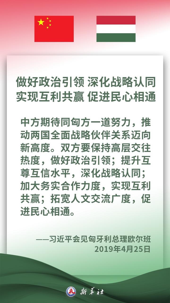 匈牙利是中东欧地区重要国家,是中方推进共建“一带一路”及中国-中东欧国家合作的重要合作伙伴。近年来,在两国领导人的战略引领下,中匈关系保持高水平发展,两国高层交往密切,政治互信持续深化,各领域合作扎实推进、成果丰硕,为两国人民带来切实利益。习近平主席说,中方愿同匈方继续做彼此信赖、合作共赢的好朋友、好伙伴。