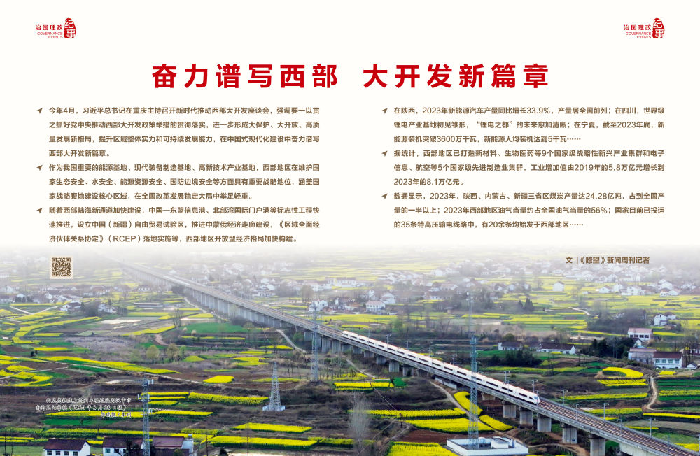 在中国式现代化的伟大实践中,西部未来可期、大有可为。一个更具活力、更加开放、更加美丽的西部,正在新起点上乘势谱写高质量发展的新篇章。