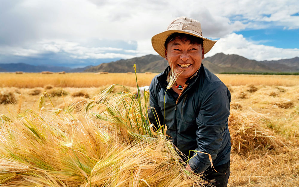 西藏日喀则市白朗县巴扎乡农民在收获青稞(2024年9月10日摄) 晋美多吉摄/ 本刊