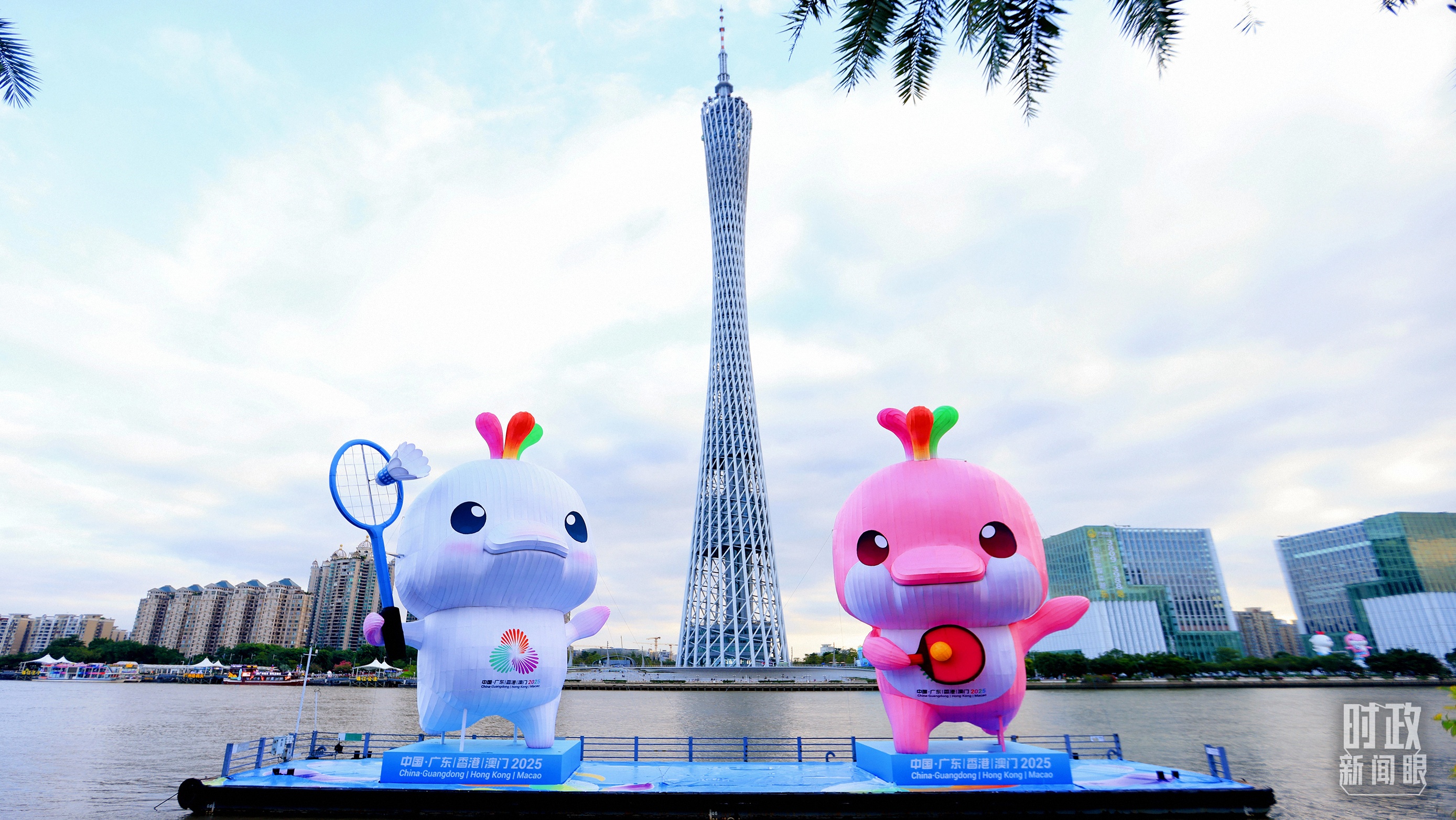 广州街头的全运会吉祥物“喜洋洋”和“乐融融”。(总台央视记者魏帮军拍摄)