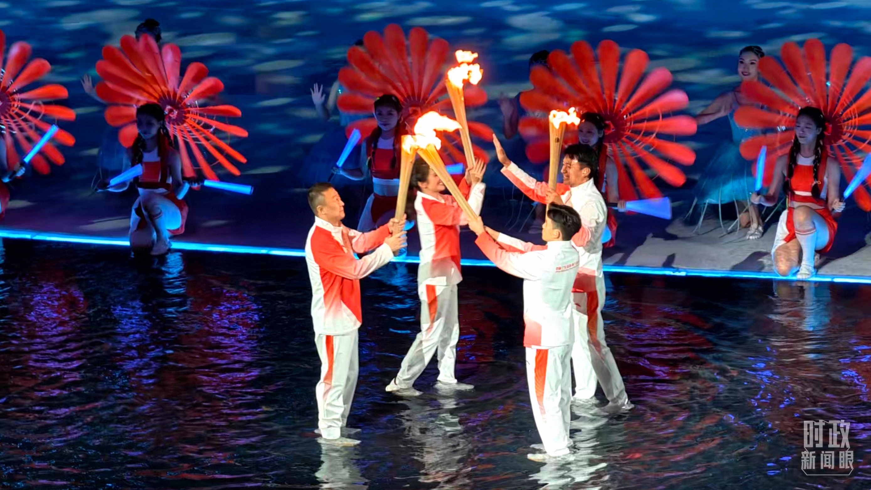 第十五届全运会主火炬点燃环节。(总台央视记者范一鸣、蒋硕拍摄)