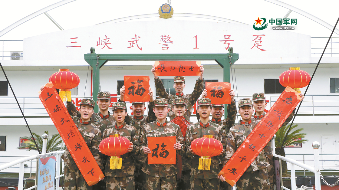 “三峡大坝雄天下,忠诚卫士保平安。”春节前夕,解放军报记者胡春华为驻守三峡大坝的武警官兵创作春联,代表《军营观察》“中国军人年夜饭”策划组送去新春的祝福。赵亚磊摄