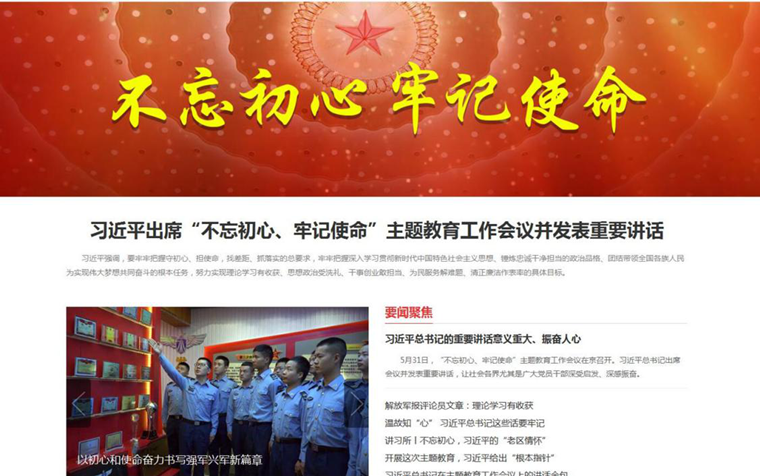 中国军网“不忘初心 牢记使命”网络专题页面截图。(点击页面进入专题)