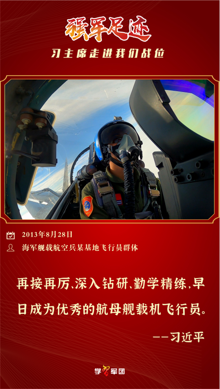 海军舰载航空兵某部担负着我军航母舰载机战斗力生成任务,锻造着航母编队作战体系的“尖刀”。2013年8月28日,习主席冒着风雨视察该部队,观看舰载机滑跃起飞、阻拦着陆训练,对首批舰载机飞行员给予高度赞赏和殷切勉励。