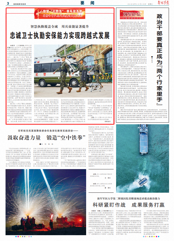 “十四五”期间,从北京冬奥安保“零失误”到进博会“分钟级响应”,武警部队一次次高质量完成使命任务,党和人民的忠诚卫士以血肉之躯和先进科技筑起了守护平安中国的坚固屏障。