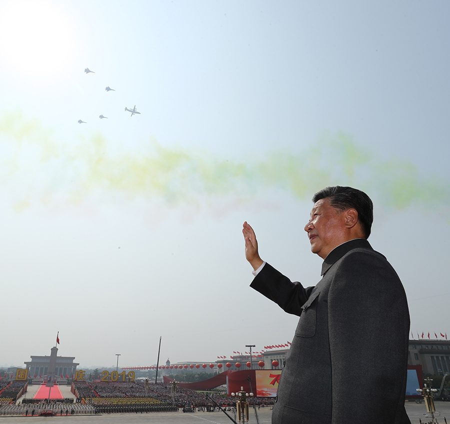 10月1日,庆祝中华人民共和国成立70周年大会在北京天安门广场隆重举行。这是中共中央总书记、国家主席、中央军委主席习近平检阅受阅部队。 新华社记者 燕雁 摄
