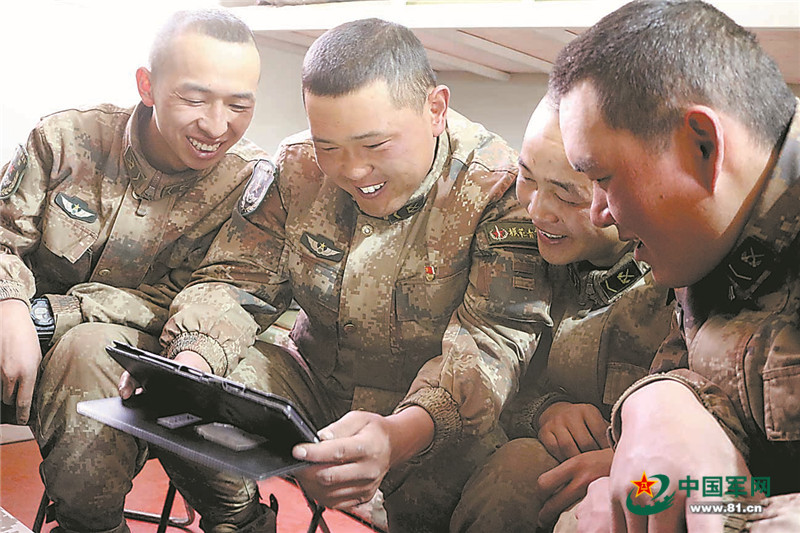 官兵在高原冬季驻训期间利用平板电脑丰富业余文化生活。 王 斌摄