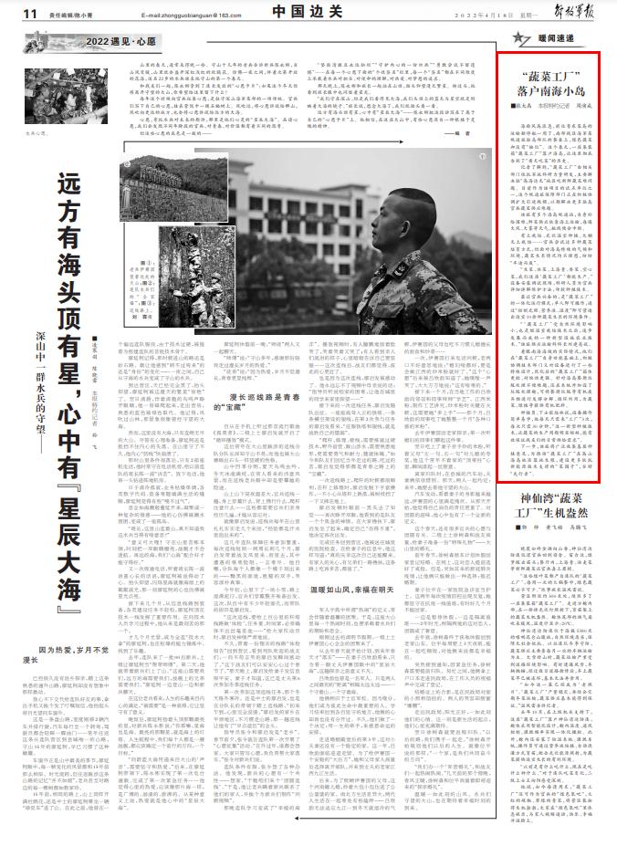 海面风高浪急,前往粤东某岛的运输船停航一周了,南部战区海军某观通旅驻岛部队的餐桌上,绿色蔬菜却没有“缺位”。这个春天,一座集装箱“蔬菜工厂”落户海岛,让这里彻底告别了“看天吃菜”的历史。