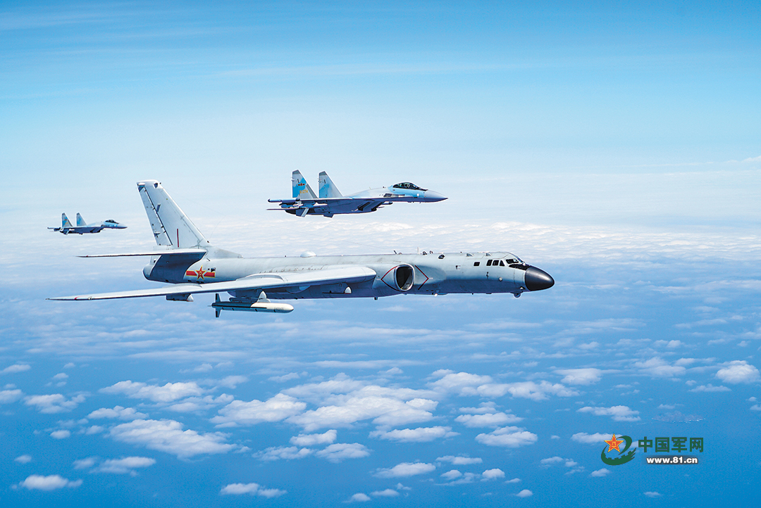 2015年3月,空军轰-6K战机前出第一岛链,飞越巴士海峡,在西太平洋上宣示了中国空军的存在。2016年,空军航空兵出动轰-6K战机对黄岩岛进行战斗巡航。近年来,从轰-6K单机单架前出,到轰-6K、苏-35和预警机、加油机、侦察机等多型多架战机编队常态化体系出击,战巡南海不仅宣示了中国空军的战略存在,更提升了中国空军应对各种安全威胁的实战能力。