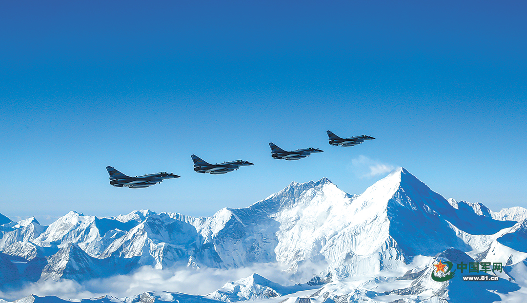 战机编队飞越雪山。邱文韬摄