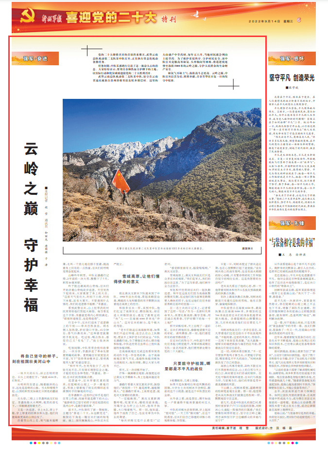 雪域高原上,黄庆文和战友们只是众多官兵的缩影。“我们是军人,我们的战位在这里。”为了这句承诺,他们拼尽全力去坚守。