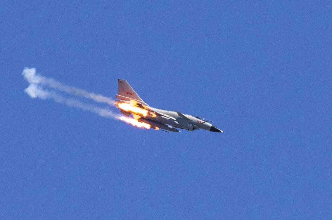 2021年9月10日,东部战区海军航空兵某旅组织地靶实弹射击训练,歼-10战机对地攻击。新华社发(赵宁宁 摄)