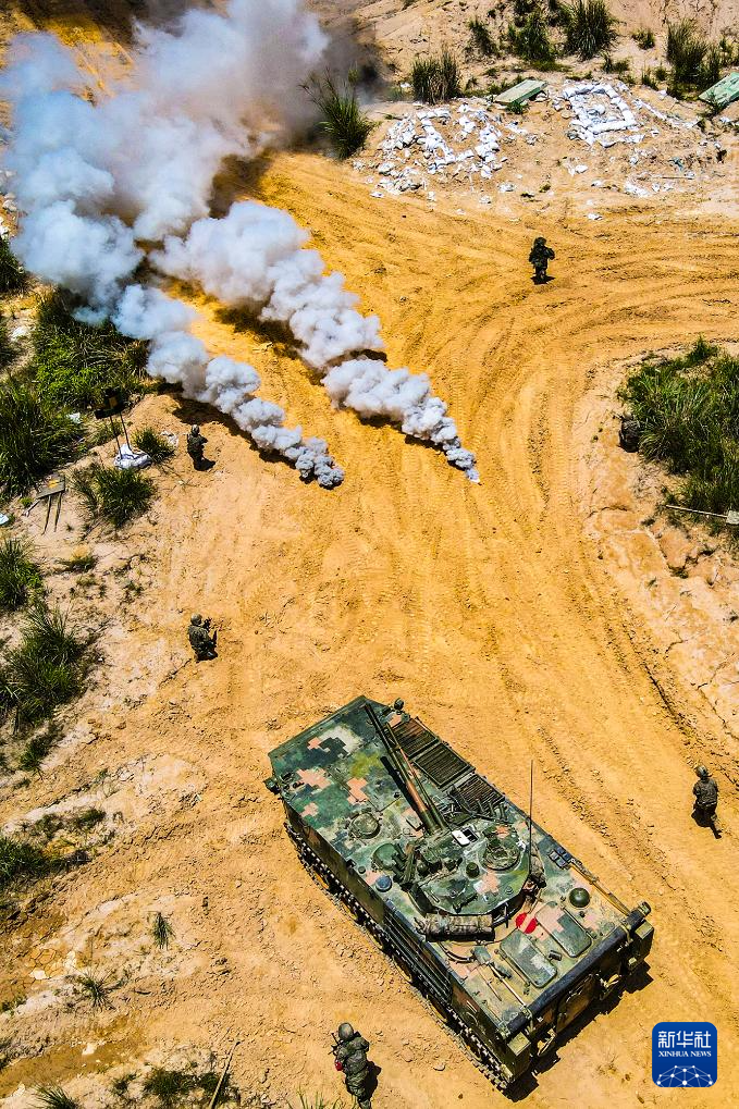 陆军第73集团军某旅“强军精武红四连”组织官兵开展连贯战术训练(2023年5月30日摄)。新华社发(刘志勇 摄)