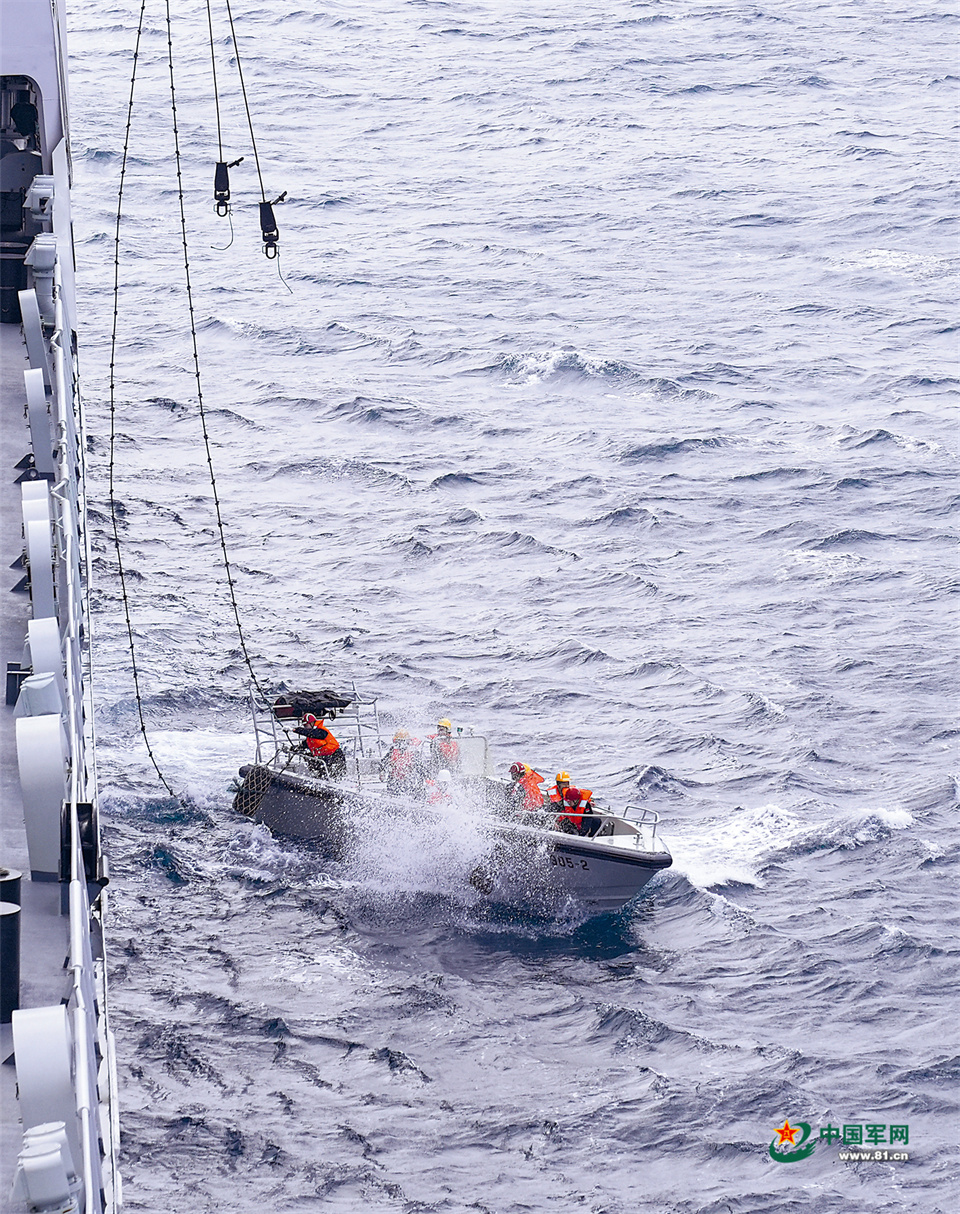 吊放小艇入海。李俊霖 摄
