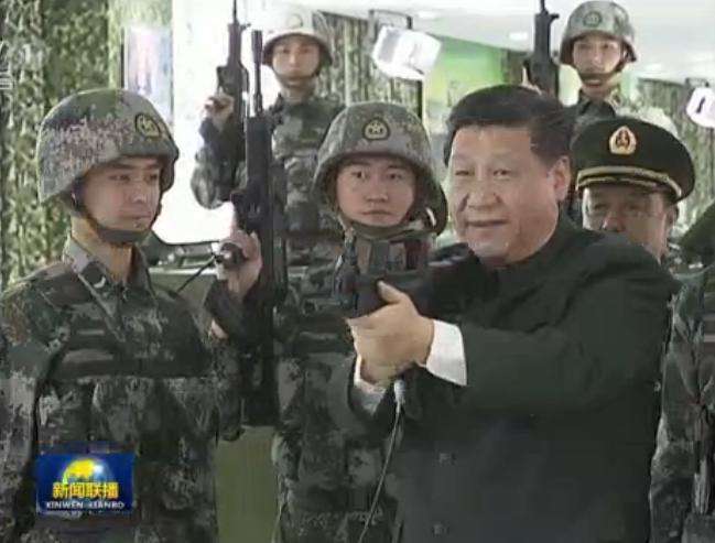 2014年12月20日,习主席视察驻澳门部队,看到大家训练有素、士气高昂,习主席十分高兴。在激光模拟射击系统前,他饶有兴致地拿起步枪和手枪体验射击要领。