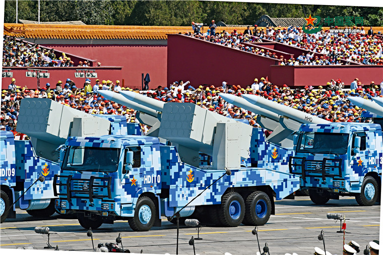 受阅的舰空导弹,是我国自主研发的第三代舰载中远程区域防空导弹。冯凯旋 摄