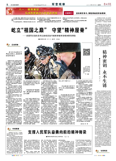 远离繁华的都市,长年与寂寞、危险相伴,有的甚至献出年轻的生命……都说西藏是世界屋脊,这群以苦为乐、为国奉献、驻守在世界屋脊上的共和国军人,守望的其实是“精神屋脊”。