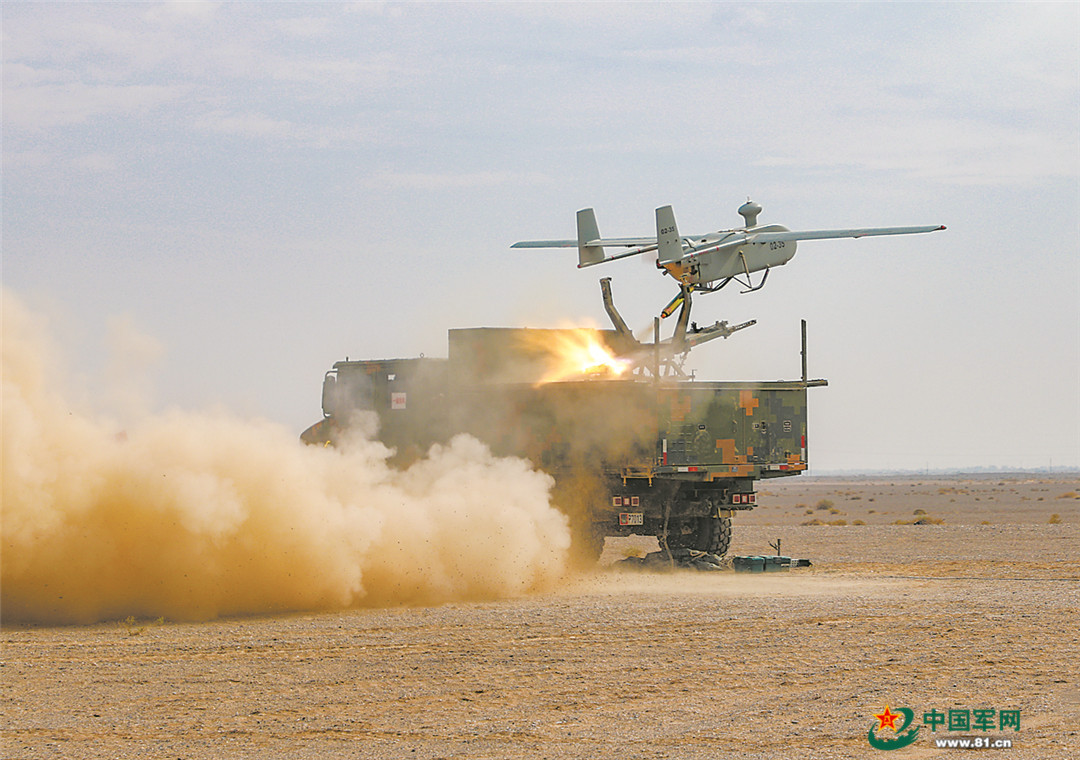 无人侦察机腾空而起。