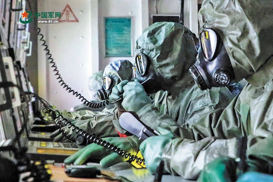 官兵穿戴防化服精准作业。