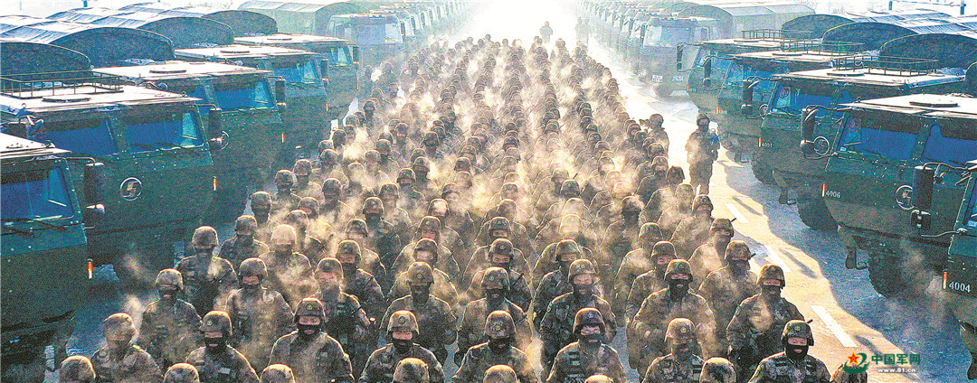 统帅一声令,三军风雷动。习主席在新年度发布的开训动员令,迅速传遍大江南北座座军营。从冰封雪裹的北疆大地到烈日炎炎的南海之滨,从山峦叠嶂的雪域高原到波飞浪卷的岛礁前哨,全军将士闻令而动、遵令而行。战车奔流,战炮怒吼,战舰破浪,战鹰出击……放眼演训场,处处涌动着实战化军事训练的热潮。