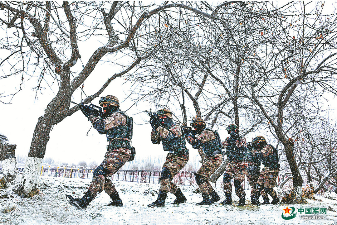 战略支援部队某旅在冰天雪地练兵。刘国辉摄