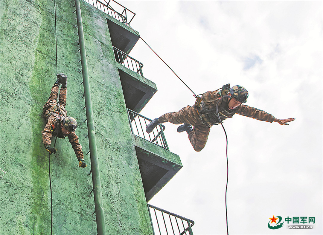 武警贺州支队特战队员进行训练。张毕海摄