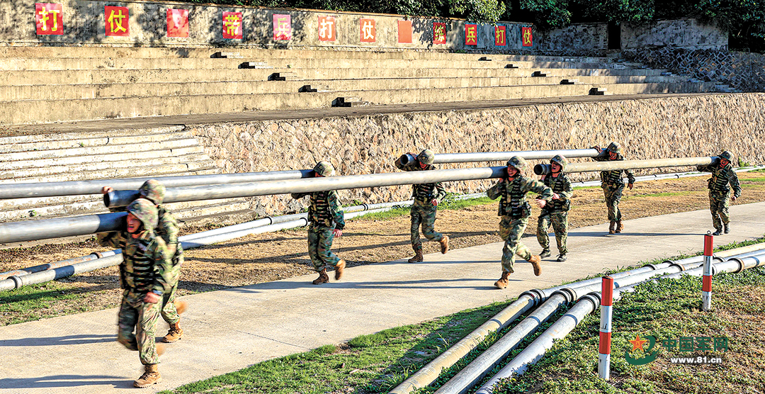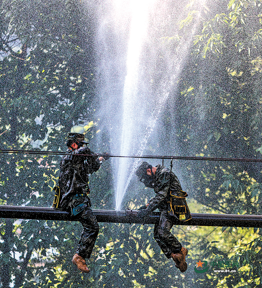 官兵搬运管线冲向任务阵地。