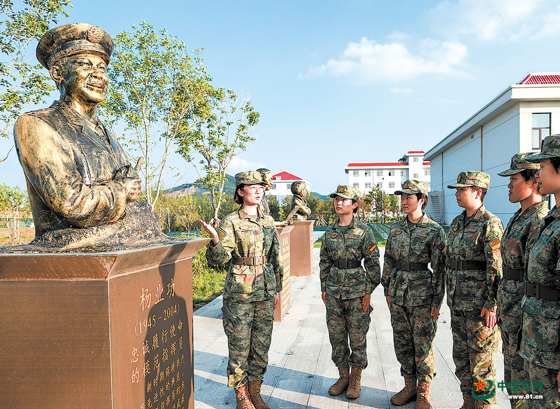 火箭军某部组织新兵在英模人物雕像前开展职责使命教育。宋雨涛 摄